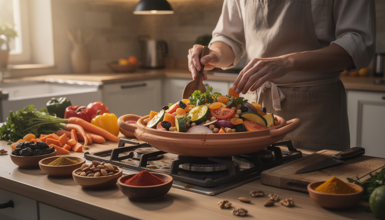 découvrez comment préparer un tajine végétarien sucré-salé savoureux en moins d'une heure grâce à notre recette facile et rapide, idéale pour un repas sain et délicieux.